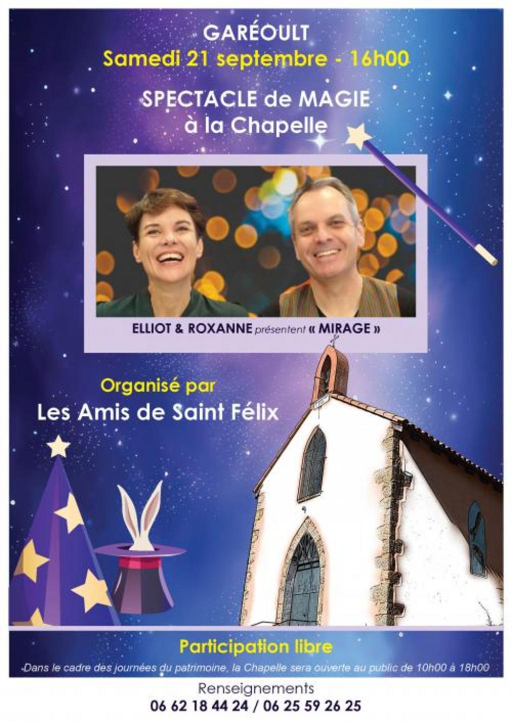 “ Un spectacle rythmé placé sous le signe du mystère et du divertissement, de la poésie et de l'humour. Une grande variété de tours sera présentée, de la magie de salon aux grandes illusions. Emerveillement garanti ”