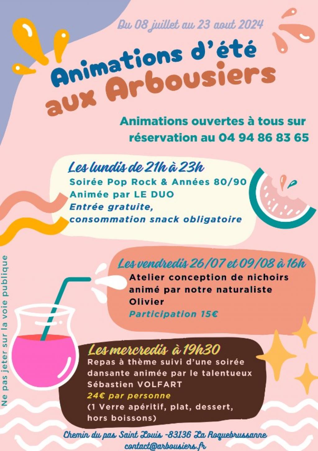Du 08/07 au 23/08/2024, tous les lundis de 21h à 23h.