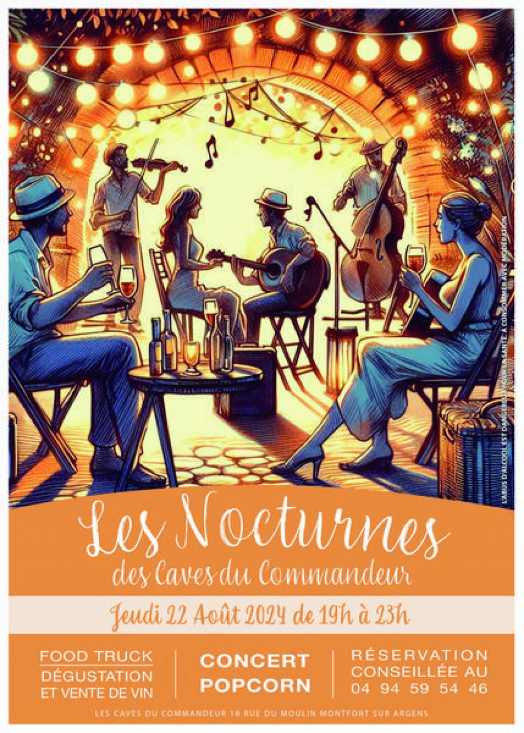 “ Les caves du Commandeur vous proposent lors de cette soirée un concert avec le groupe Pop Corn, une dégustation et vente de vin. Food trucks sur place. ”
