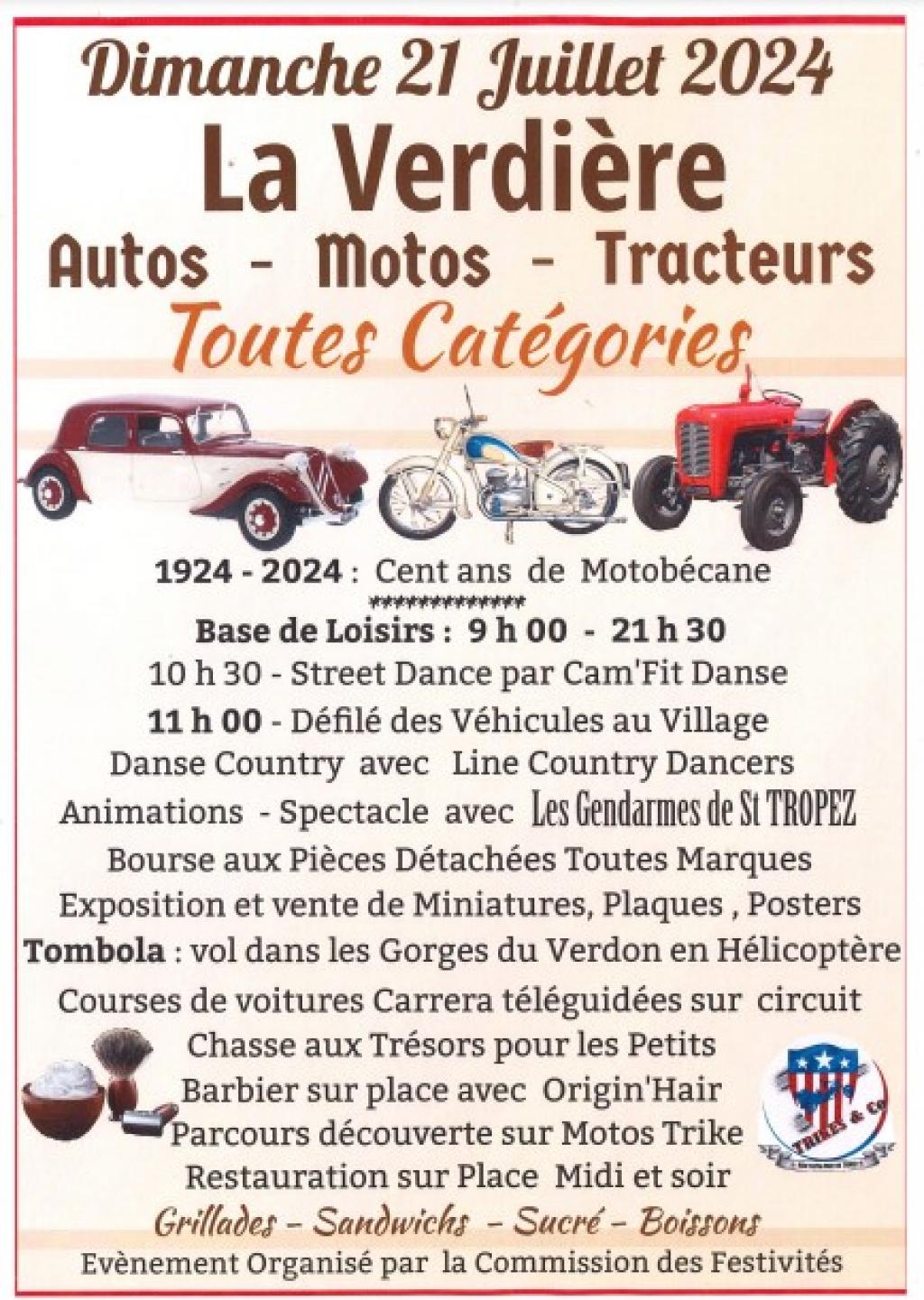 > 11H00 Défilé de Véhicules au village. Restauration et buvette sur place (midi & soir). Danse country, spectacle avec Les Gendarmes de St Tropez, bourse aux pièces détachées, exposition et vente de voitures miniatures, barbier sur place avec Origin'Hair...