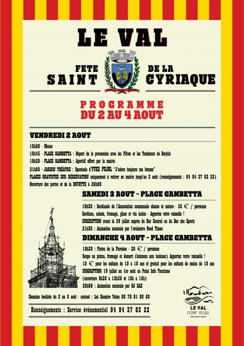 PLACES GRATUITES SUR RÉSERVATION uniquement à retirer en mairie jusqu'au 2 août (renseignements : 04 94 37 02 22)
