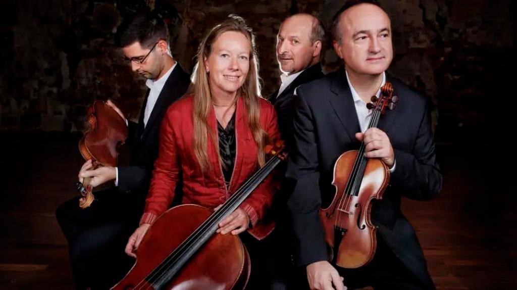 “ Sébastien Surel 1er violon, Manuel Douirelant 2nd violon, Padrig Fauré alto, Anne Copéry violoncelle. Fondé en 1985 le Quatuor Ludwig a su s'imposer sur la scène française et internationale grâce à sa palette sonore infiniment poétique ”