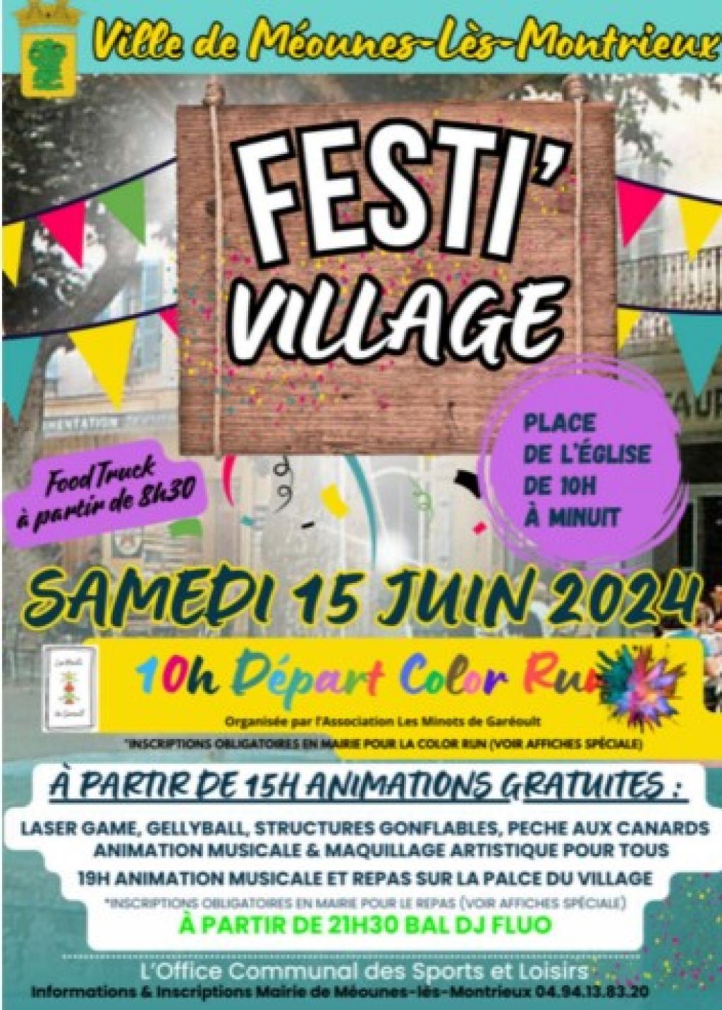 Color run, animations, repas, soirée fluo | Festi'village