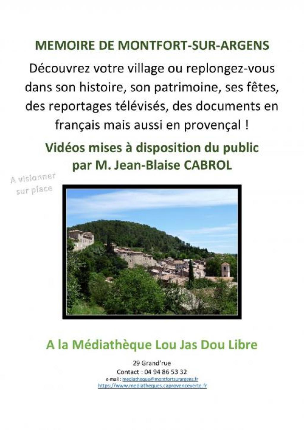 “ Découvrez votre village ou replongez-vous dans son histoire, son patrimoine, ses fêtes, des reportages télévisés, des documents en français mais aussi en provençal à travers Vidéos mises à disposition du public par M. Jean-Blaise CABROL. ”