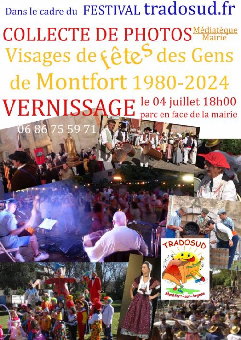 “ Une exposition vous présentant les visages de fêtes des gens de Montfort (1980 - 2024) . avec un vernissage, suivi d'un apéritif ”