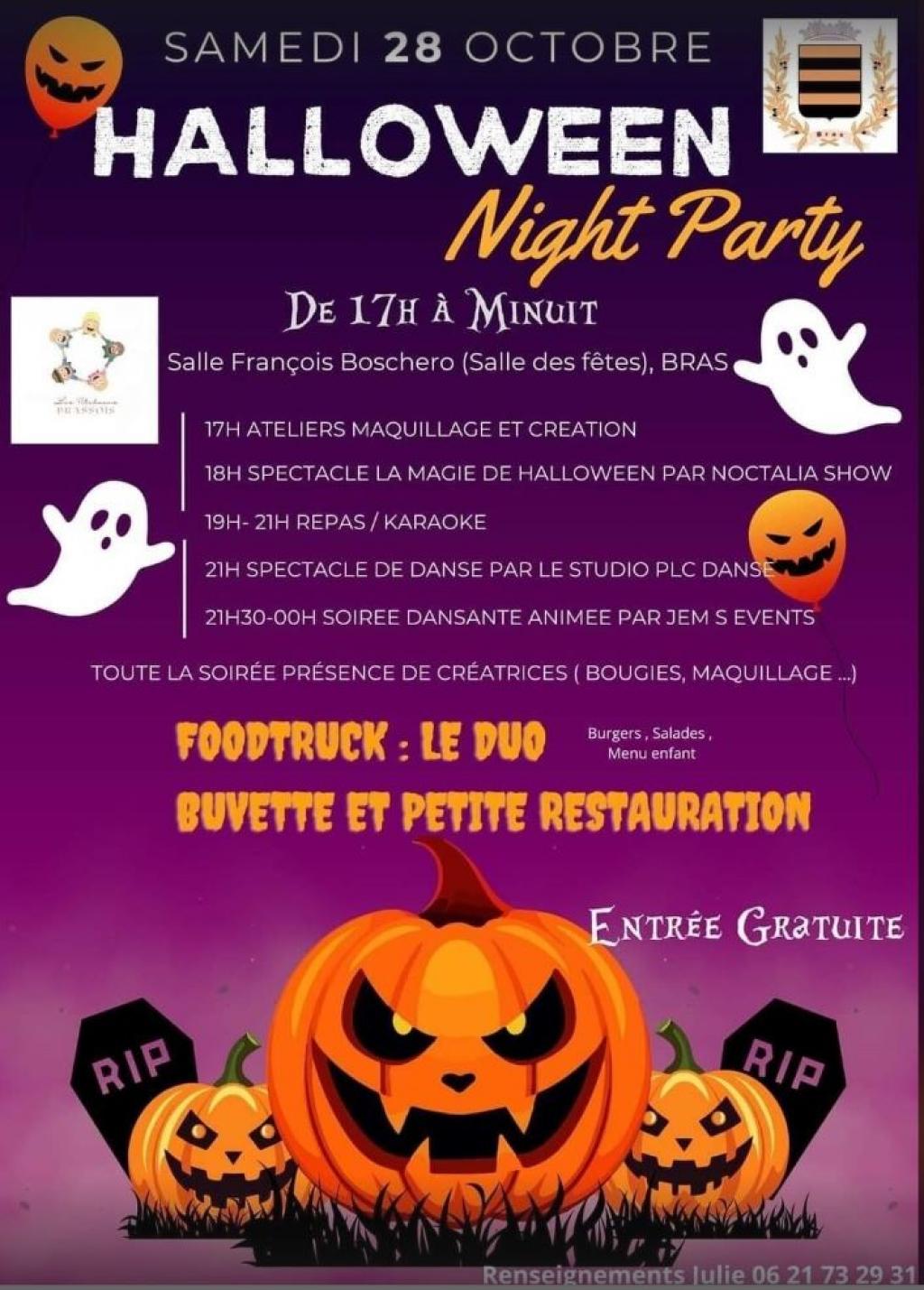 “ Une soirée d'Halloween avec de multiples animations. Toute la soirée, présence de créatrices (bougies, maquillages, …). Buvette et petite restauration. ”