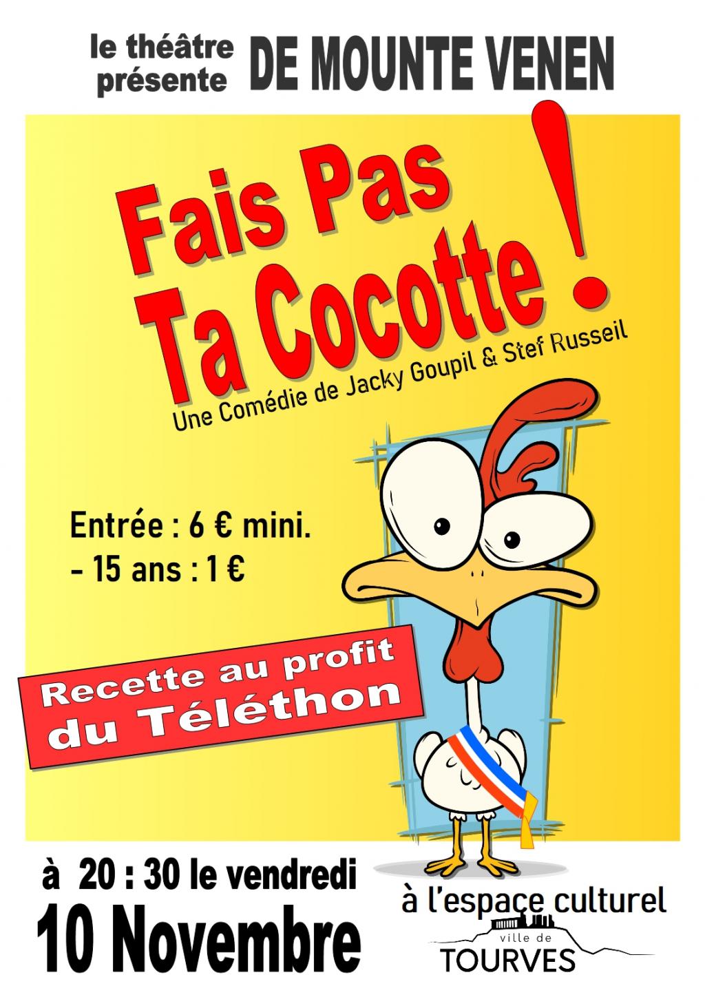 “ "Fais pas ta cocotte" est une comédie moderne, avec des vrais morceaux de Feydeau, déjantée, loufoque. Du théâtre dans le théâtre avec amants et maitresses qui se croisent, catastrophes qui s’enchainent, personnages atypiques et mensonges multiples. ”
