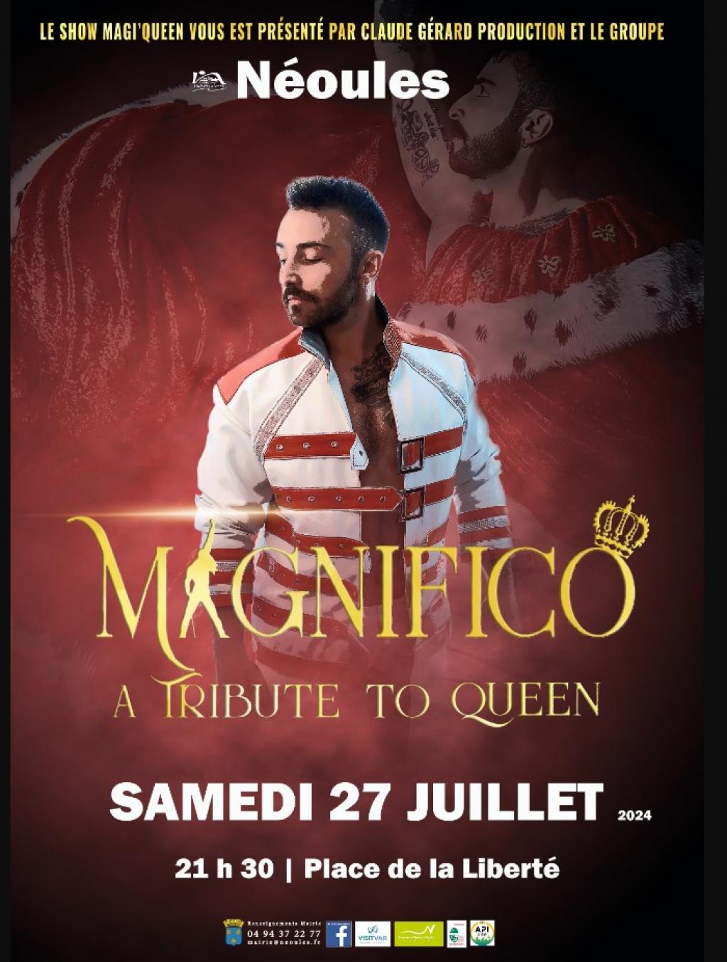 “ Un concert en hommage au groupe Queen par Magnifico, produit pas Claude Gérard Production. ”