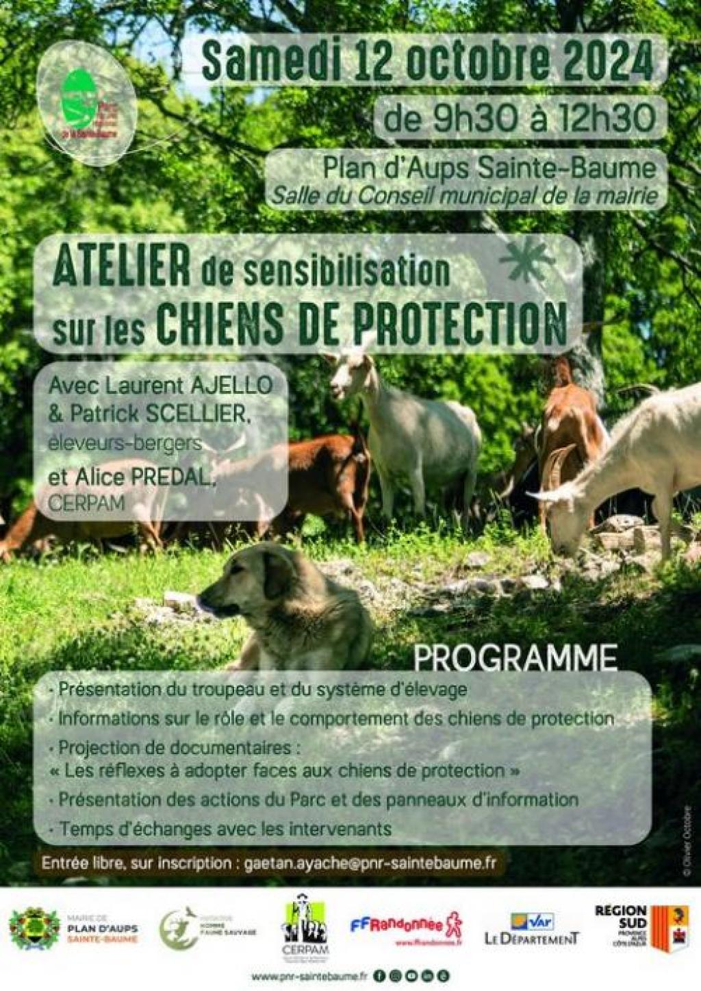“ Laurent Ajello et Patrick Scellier, éleveurs-bergers et Alice Predal de la CERPAM vous proposent un atelier de sensibilisation pour découvrir les patous, qui sont des chiens de protection et la manière les appréhender. ”