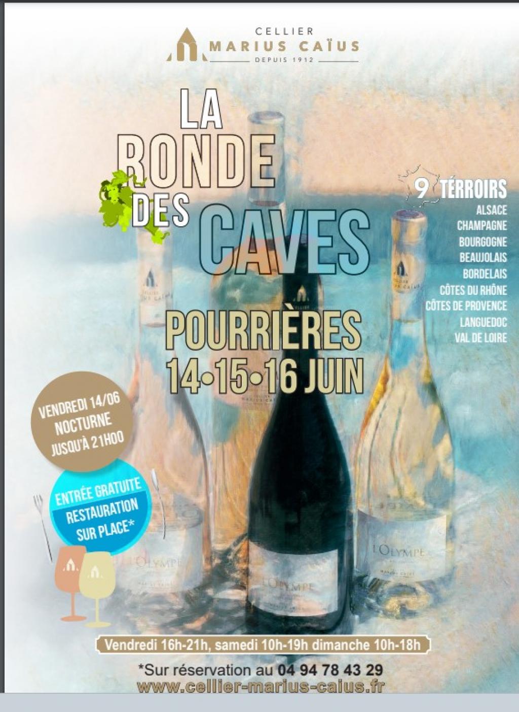 “ Découvrez 9 terroirs français à l'occasion de la ronde des caves, restauration sur place et nocturne au programme du vendredi soir. ”