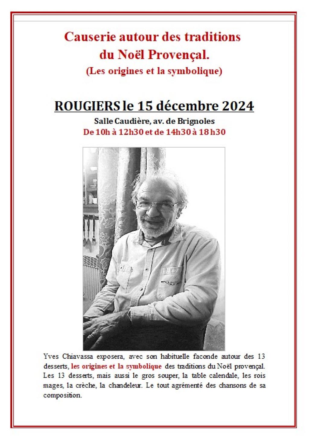 “ Une causerie menée par Yves Chiavassa autour des traditions du Noël Provençal, les origines et la symbolique. ”