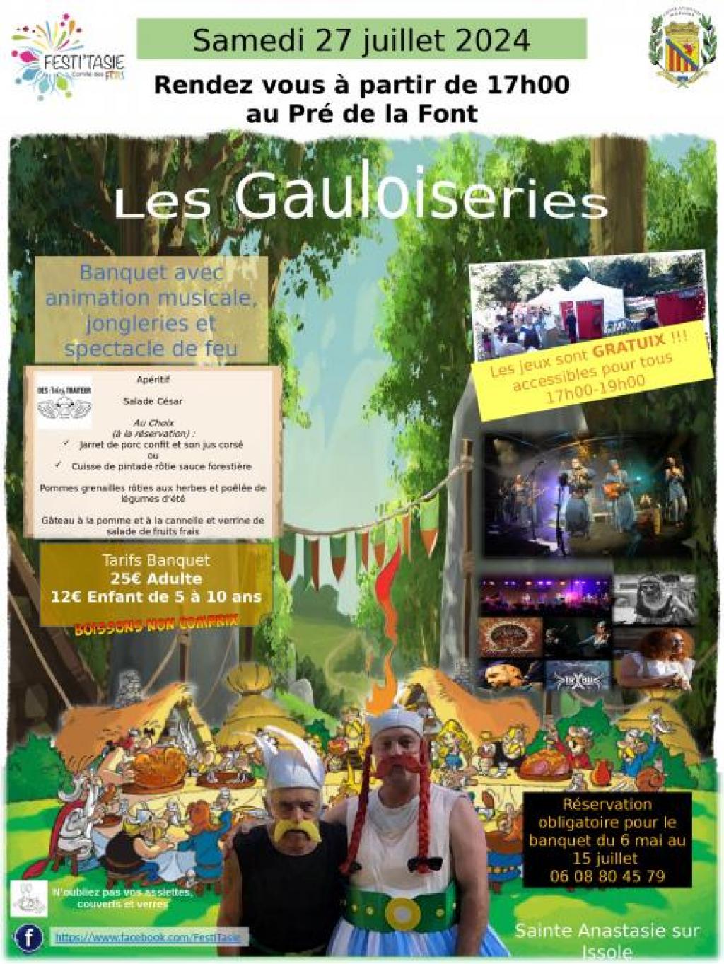 “ Un Banquet gaulois Des Ailes Traiteur vous sera proposé lors de cette fête. Animation musicale, et jonglerie rythmeront cette soirée. ”