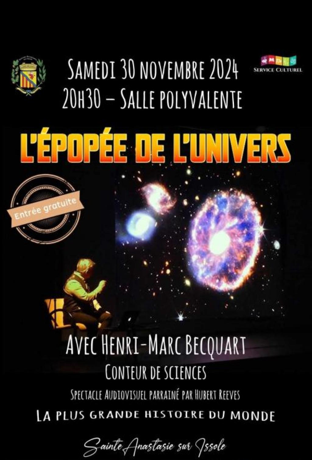 “ Avec Henri-Marc BEQUART conteur de sciences. Parrainé par Hubert REEVES; ”