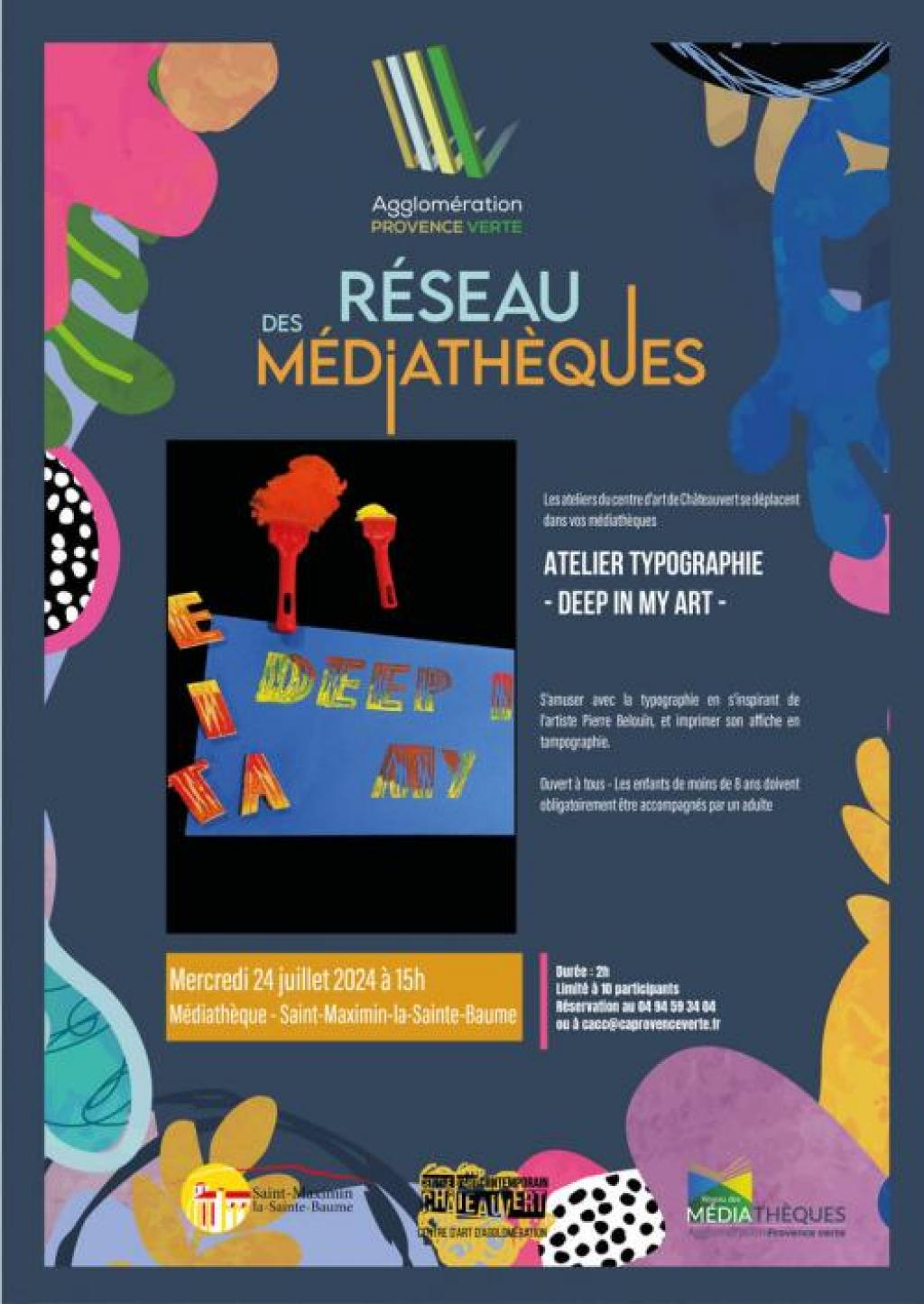 Dans le cadre de la programmation culturelle du Réseau des médiathèques, les ateliers du centre d'art de Châteauvert se déplacent dans vos médiathèques.