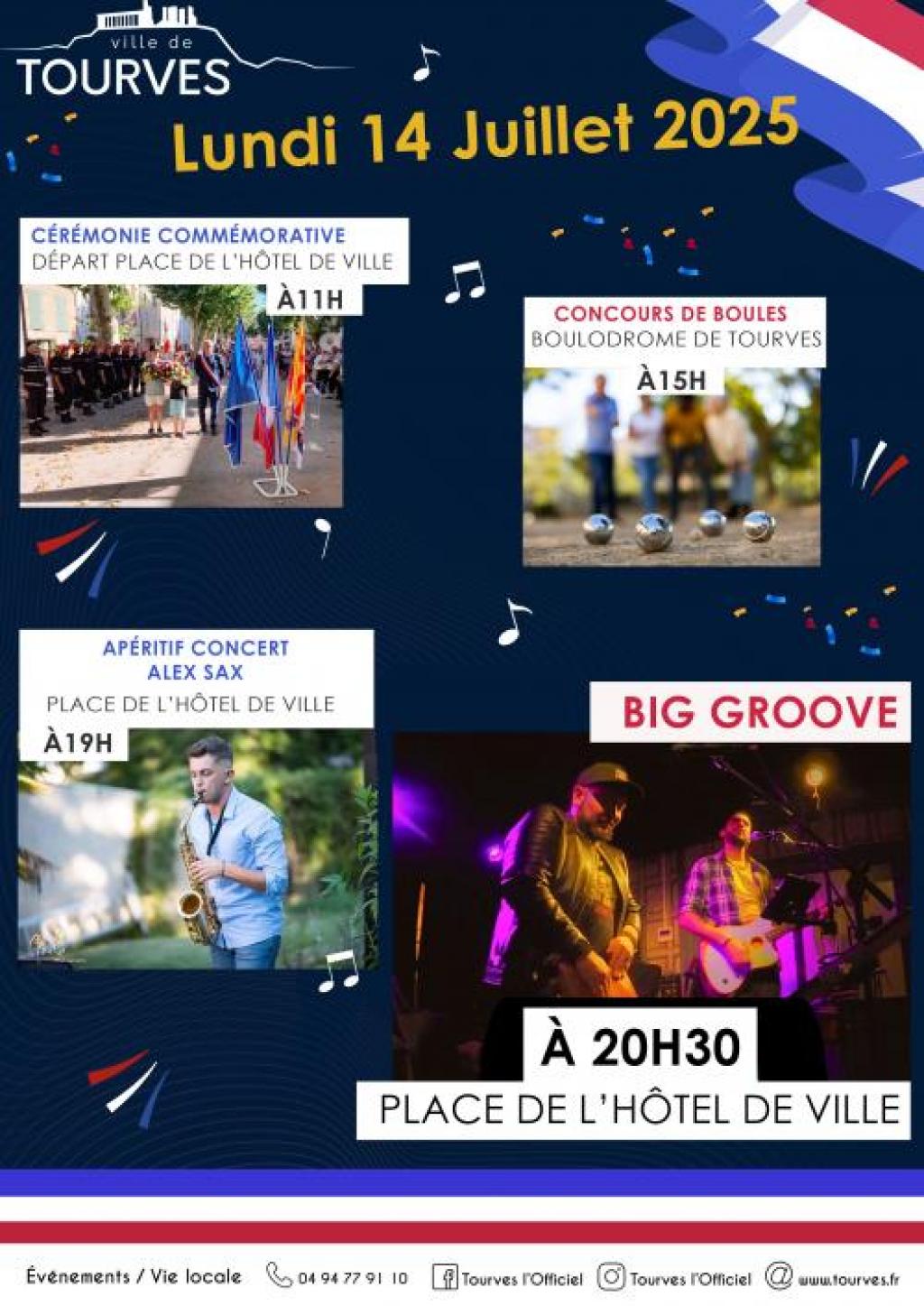 > A partir de 20h30 : Concert avec le groupe Big Groove - Place de l'Hôtel de Ville