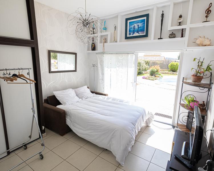 Chambre exposée à l'Est, l'autre au Nord. Et la troisième propose une vue sur la piscine et le jardin.