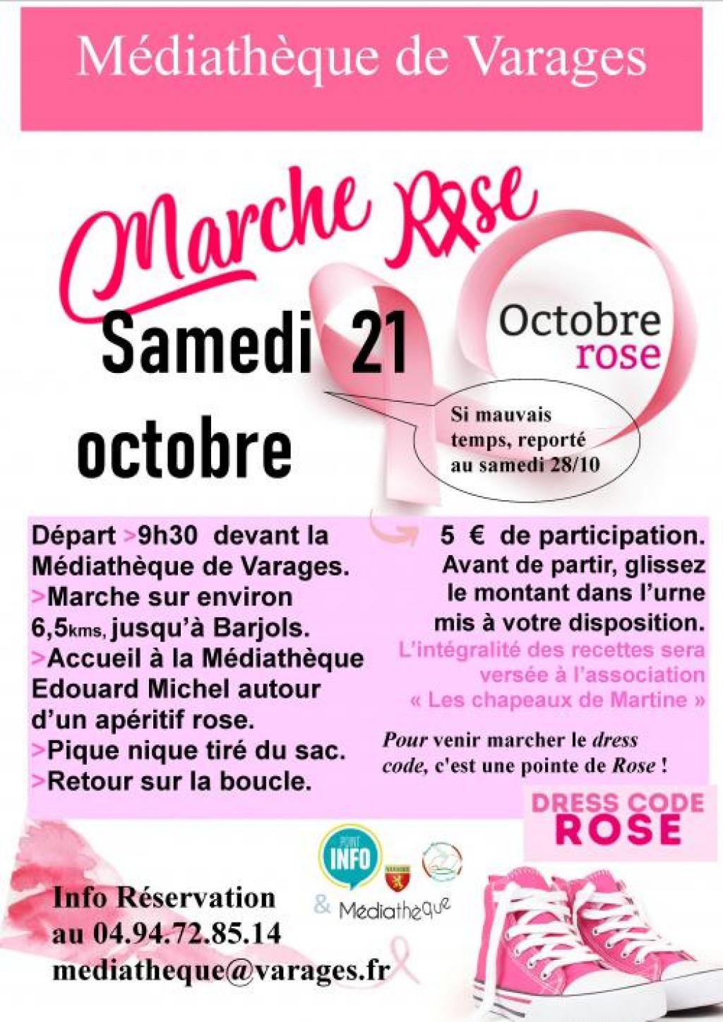 “ Une marche rose colorée (selon les conditions météorologiques du moment) Dress code en rose /ou une pointe de rose avec des lunettes ”