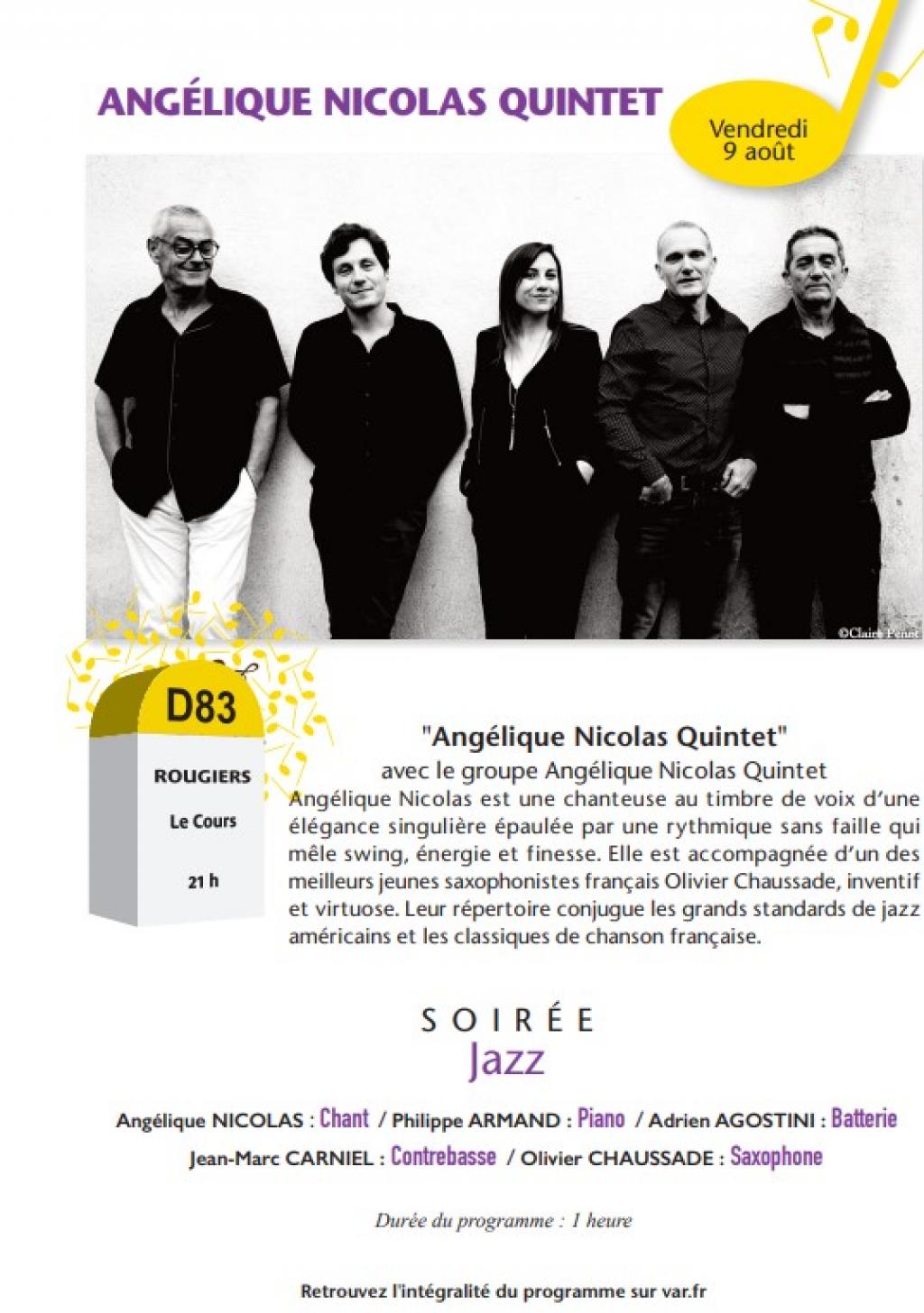 “ Angélique Nicolas est une chanteuse au timbre de voix d’une élégance singulière épaulée par une rythmique sans faille qui mêle swing, énergie et finesse. ”