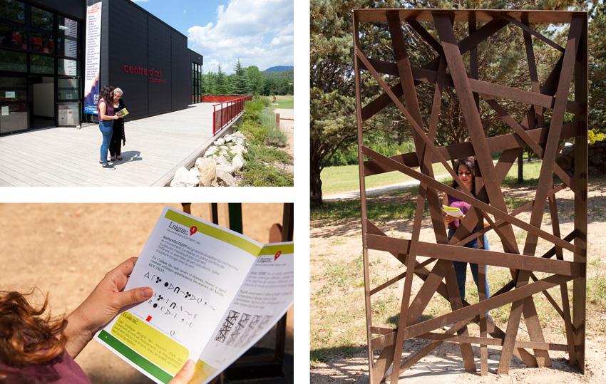 A l'accueil du CAC, Aurélie (la médiatrice culturelle) me conseille de débuter avec une exploration du jardin pour aller voir les sculptures. Elle me propose de tester le livret jeu pour enfants. Je pourrai ensuite revenir avec ma petite soeur de 10 ans. Je me concentre (un peu) et essaie de résoudre les énigmes. Avec tous ces codes secrets je suis sûre que ça va lui plaire !