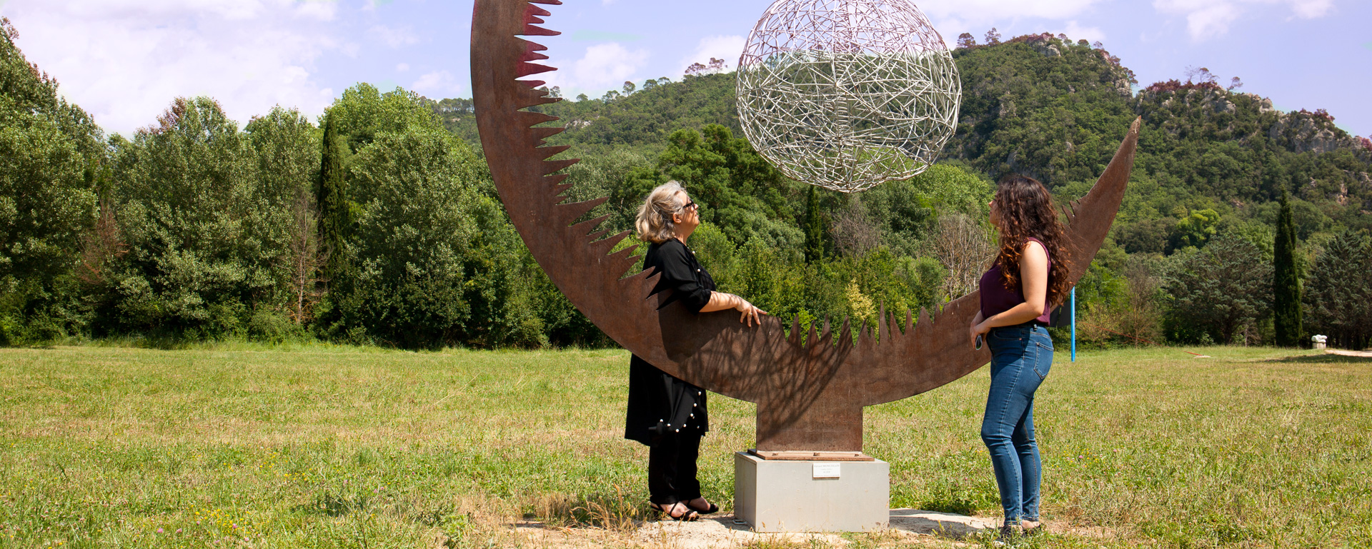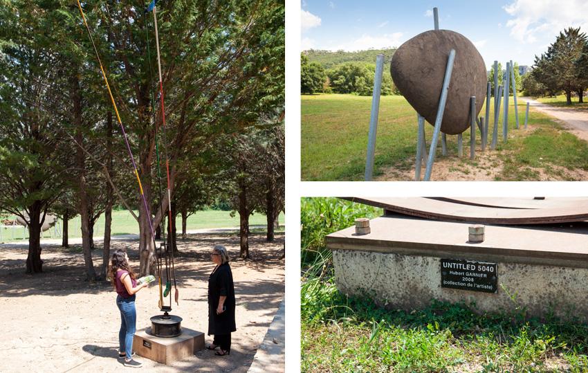La balade dans le jardin se poursuit : on observe, on papote, et on se questionne sur les oeuvres.