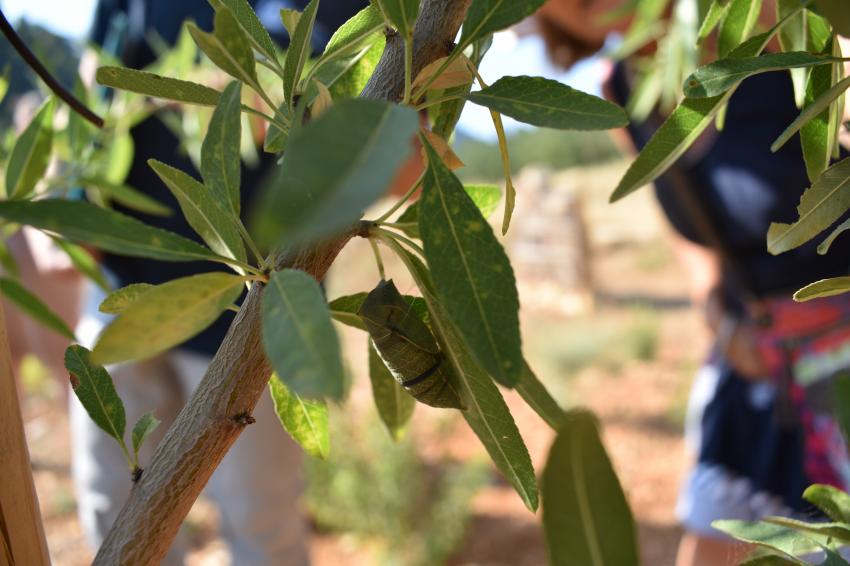 Au détour du jardin, une surprise m'attend : une magnifique chrysalide de Flambé. Clément en profite pour nous rappeller les différentes étapes entre l'oeuf et le papillon. C'est vraiment impressionnant ce qu'arrive à faire cet insecte.